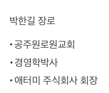 애터미 회장 박한길 장로는 성경에서 얻은 지혜로 부(富)를 이루고, 이를 하나님이 원하시는 곳에 흘려보내는 축복의 통로가 되고자 한다. 드리미선교재단을 세워 천안 드리미고등학교를 운영 중이며, 해외에 100개 기독교학교 설립계획을 세우고 캄보디아, 몽골, 베트남에서 실행해 나가고 있다. 애터미는 26개 해외 법인과 60개국 판매물류시스템을 보유하고 창업 10년 만에 연 매출 1조 원, 지난해엔 2조6천억 원을 달성했다. 또한 매출액 대비 기부금 비중이 국내 1위인 나눔의 명가다.  /편집자 주