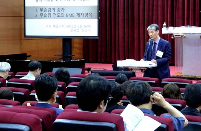 총회 무슬림및단군상대책위원회(위원장 황수석 목사)는 지난 6월 26일 포항제일교회(박영호 목사 시무)에서 포항노회 이단사이비대책위원회(위원장 정진우 목사) 주관으로 제109회기 찾아가는 세미나를 개최했다.