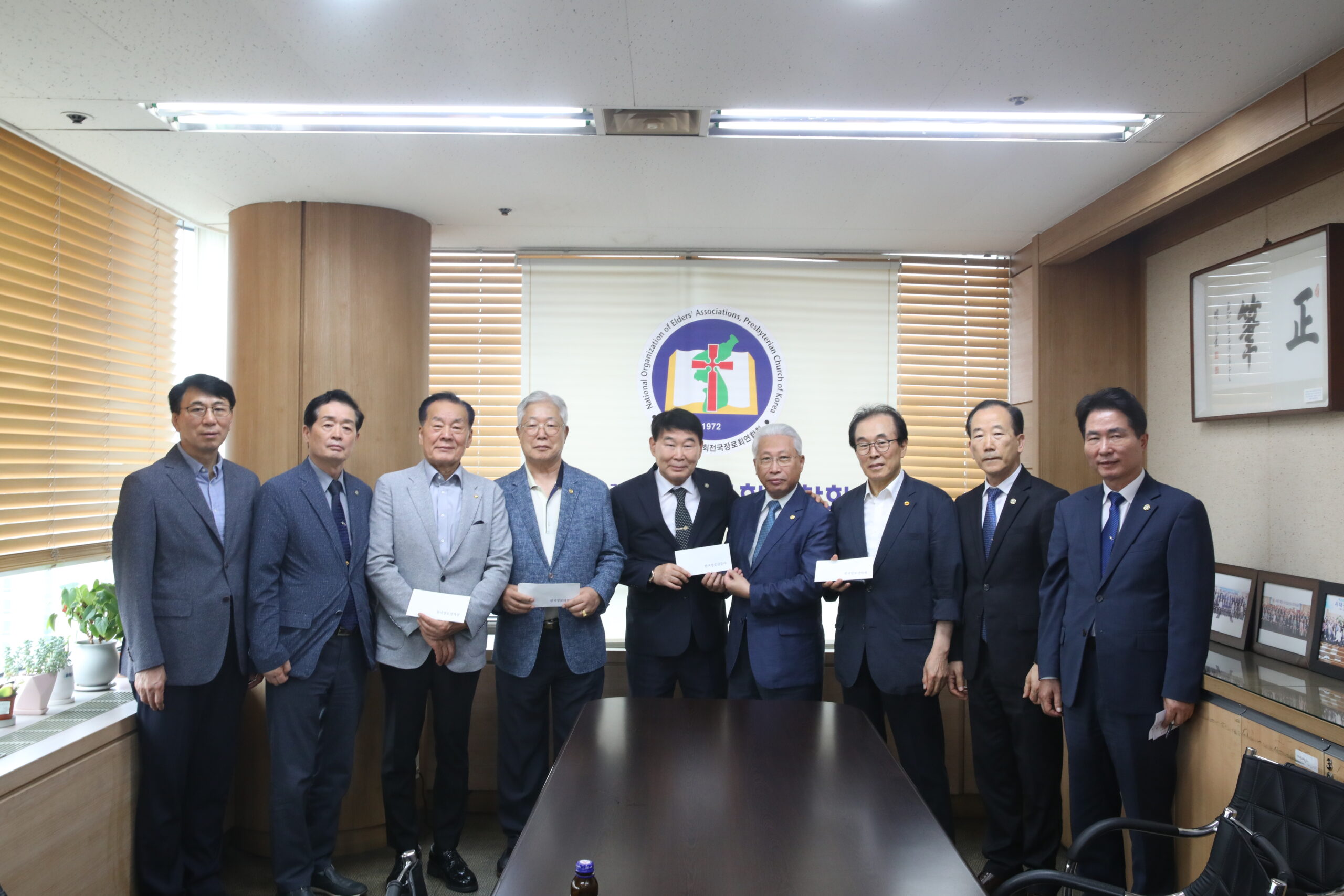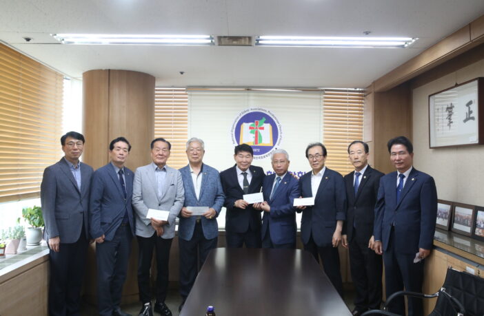 지원금 전달식은 회장 길근섭 장로 인사, 산하기관장 감사인사, 지원금 전달식을 가졌다.