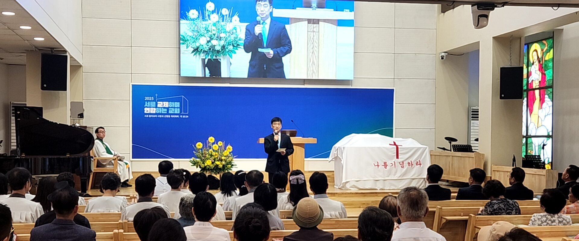 김성환 목사는 “오늘의 예배는 단지 예수님의 희생을 기억하는 데 그치지 않고, 그 사랑을 나눌 수 있는 자리까지 나아가야 한다. 하나님께서 우리에게 맡기신 생명을 내 안에만 머무르게 하지 않고, 마지막까지 이웃을 위해 나누는 것이야말로 복음에 합당한 삶”이라며 “이 땅에서 살아가는 동안 하나님께서 주신 육신을 귀하게 사용하다가, 마지막 순간까지 하나님께 영광이 되는 일에 쓰임 받는 것은 은혜”라고 했다. 이어 사랑의장기기증 상임이사 김동엽 목사가 장기기증의 내용과 희망등록 방법을 안내했다.