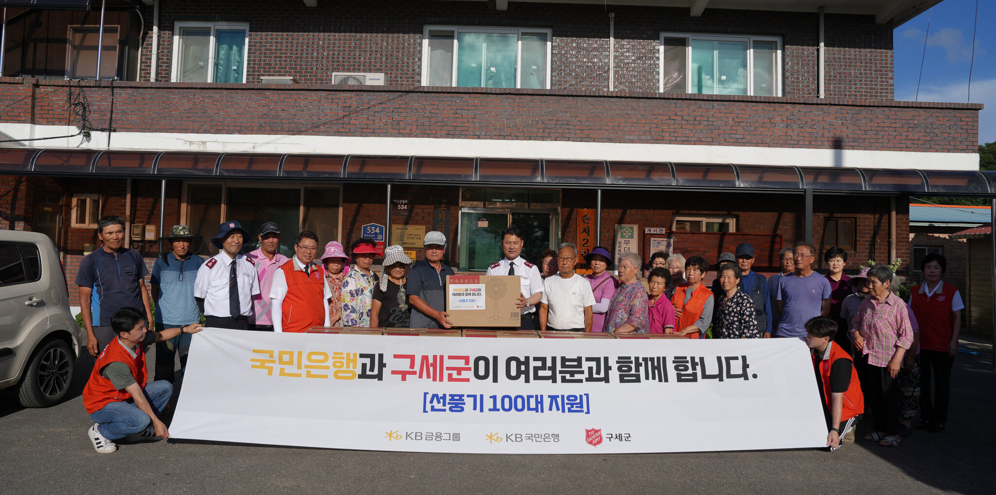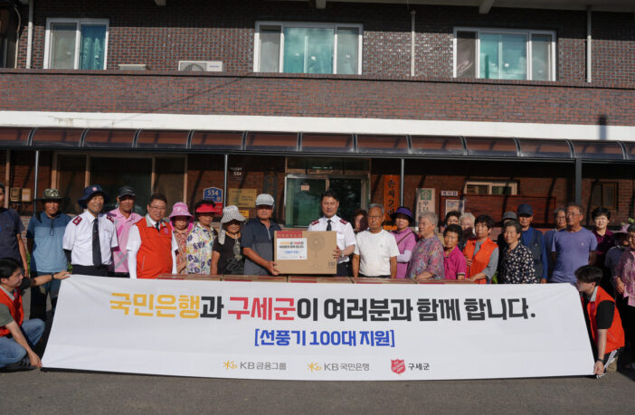 구세군한국군국(사령관 김병윤)은 지난 7월 21일 충남 예산군 손지2리 마을회관과 삽교읍행정복지센터에서 KB국민은행 후원으로 복구 작업과 대피소 생활을 이어가는 주민들에게 실질적인 도움을 전하기 위한 민관 협력의 일환으로 집중호우 피해 주민들을 위한 물품을 전달했다. 물품 중 선풍기 100대는 손지리 일대 피해 가정에 순차적으로 배포되고, 위생용품·간편식·이불 등으로 구성된 긴급구호 키트 200세트는 예산군 전역의 피해 가정과 대피소에 전달되어 이재민들의 일상 회복을 지원한다.