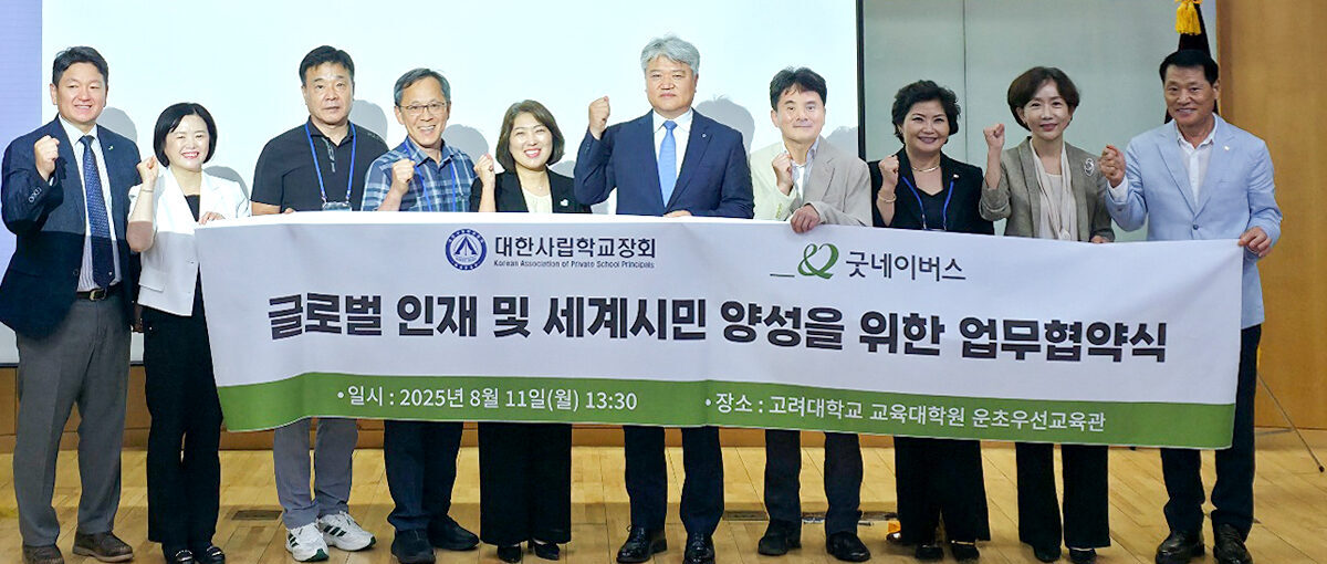 대한사립학교장회 김해관 회장은 “이번 협약을 계기로 학생들이 지구촌 이웃을 위해 나눔을 실천하는 세계시민으로 성장하길 바란다. 앞으로도 굿네이버스와 함께 다양한 교육 프로그램을 통해 학생들과 함께 의미 있는 변화를 만들어 가겠다”고 밝혔다.