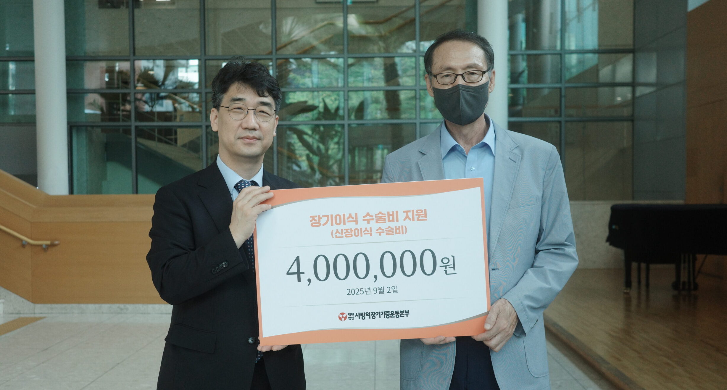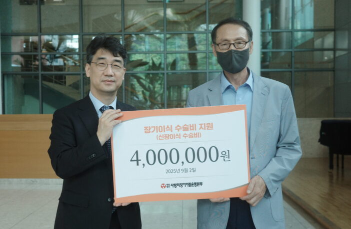 사랑의장기기증운동본부(이사장 유재수 장로, 이하 사랑의장기기증)는 지난 9월 2일 세브란스병원에서 신장이식 환자 박원규 선교사(68세, 남)에게 수술비 일부인 400만 원을 전달했다.
