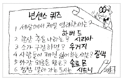 스마일리 장로의 나들이 [스마일리] 넌센스 퀴즈 한국장로신문 2025년 9월 16일 댓글 없음 공유하기 Tweet Google+ LinkedIn Email Katalk + 공유하기 Twitter Facebook Google+ LinkedIn . Email