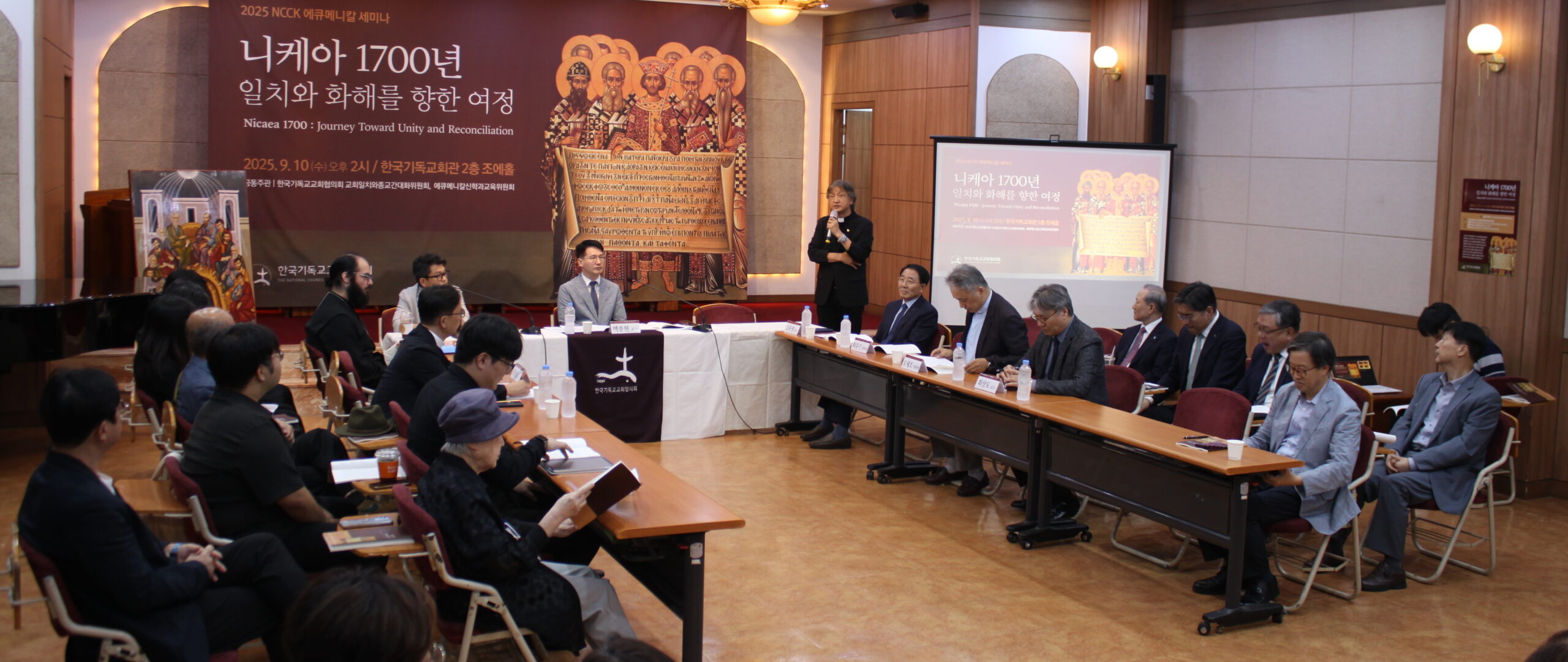 한국기독교교회협의회(총무 김종생 목사, 이하 NCCK) 교회일치와종교간대화위원회(위원장 최준기)와 에큐메니칼신학과교육위원회(위원장 오세조)는 지난 9월 10일 한국기독교회관 2층 조에홀에서 ‘니케아 1700년 일치와 화해를 향한 여정’ 주제로 에큐메니칼 세미나를 개최했다.
