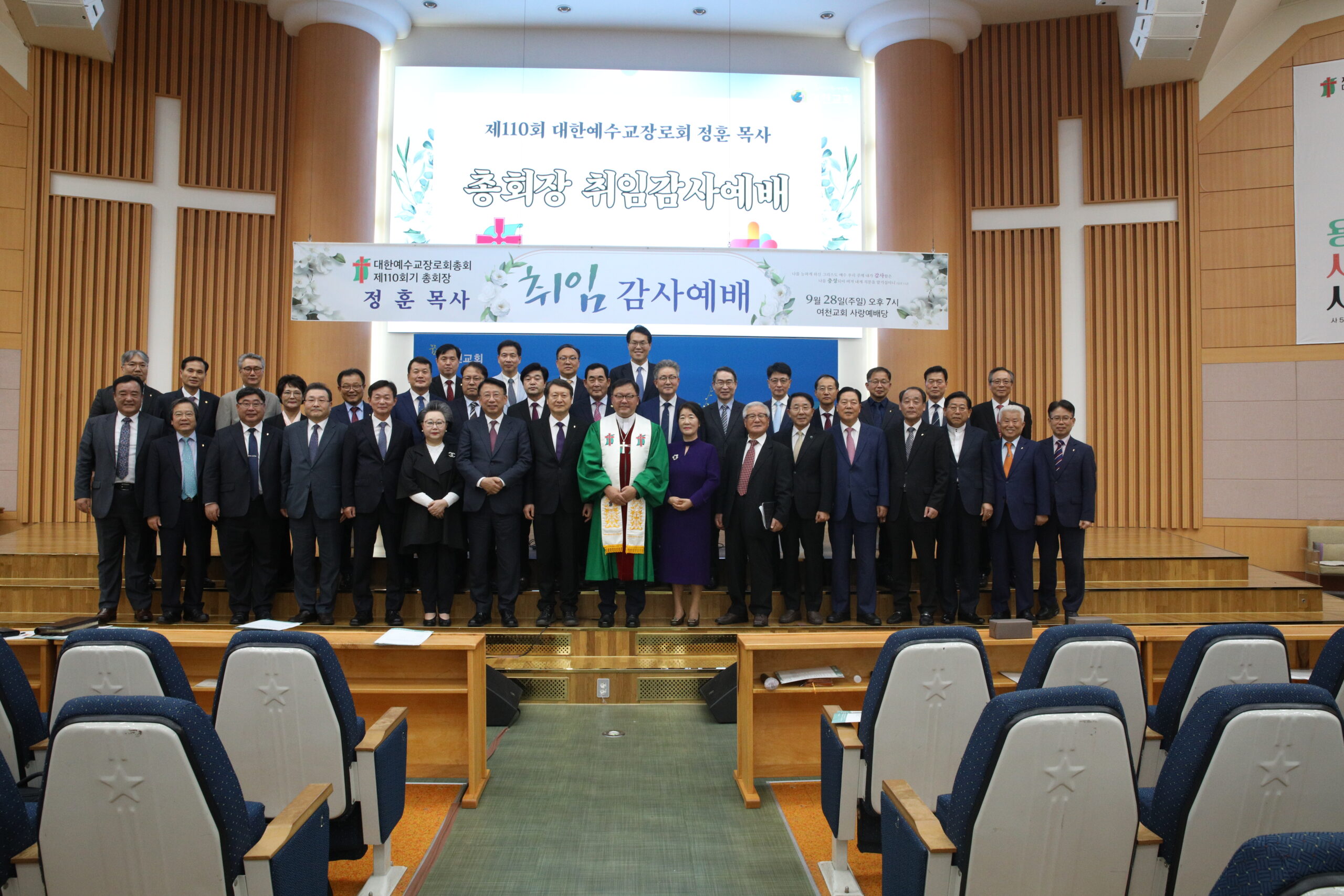 본 교단 110회 총회 정훈 목사 총회장 취임감사예배가 지난 9월 28일 여천교회 사랑예배당에서 거행됐다.