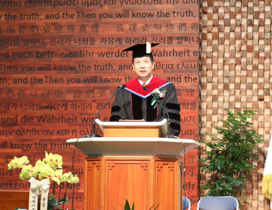 또한 “재정 문제 극복 등 대학을 ‘한국교회 부흥의 견인차’가 되는 행복 플랫폼으로 만들겠다”며 “대학 발전을 위한 전사가 아니라 구성원들을 섬기는 ‘신실한 종’으로 최선을 다하겠다. 교수, 직원, 학생 모두가 하나 되어 사명을 감당할 것”을 당부했다.
