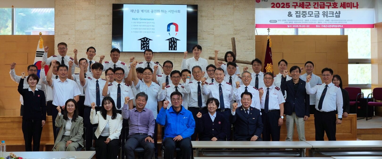 구세군한국군국(사령관 김병윤)은 지난 10월 20일부터 22일까지 2박 3일간 구세군사관대학원대학교에서 ‘재난대응 역량강화와 현장 실천’ 주제로 2025 구세군 긴급구호 세미나 및 집중모금 워크숍을 개최했다. 이번 세미나는 급변하는 기후 환경 속에서 증가하는 각종 재난에 효과적으로 대응하기 위해 교회와 지역사회, 민간단체가 함께 협력할 수 있는 방안을 모색하고 현장 실습을 통해 대응 역량을 강화하기 위해 마련됐다.