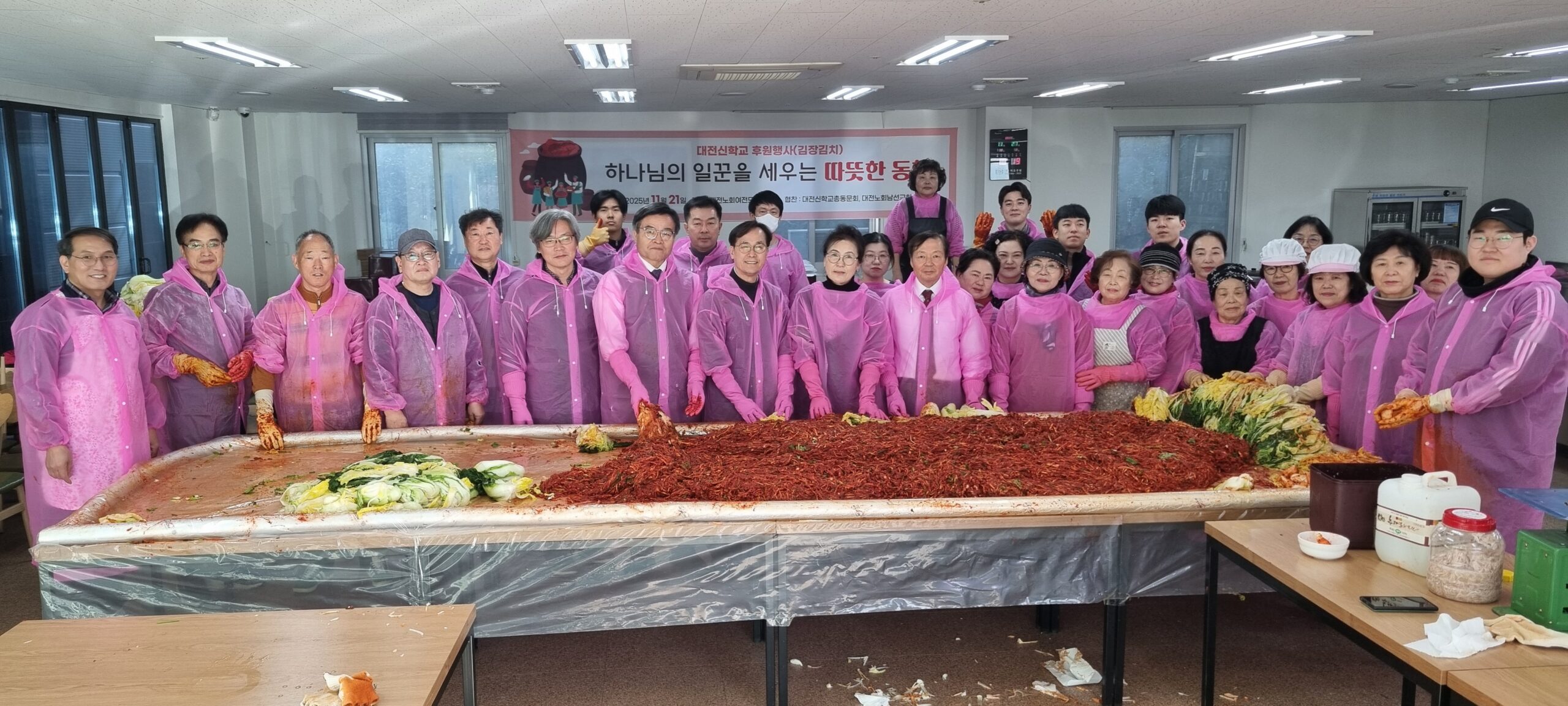 대전노회 여전도회연합회(회장 강난수 권사)는 2025년 김장 사역의 수익금 전액을 대전신학대학교와 신학생들을 위해 후원키로 결정하고 지난 11월 21일 대전노회 회관에서 대전신학교 후원행사(김장김치) ‘하나님의 일꾼을 세우는 따뜻한 동행’을 진행했다.