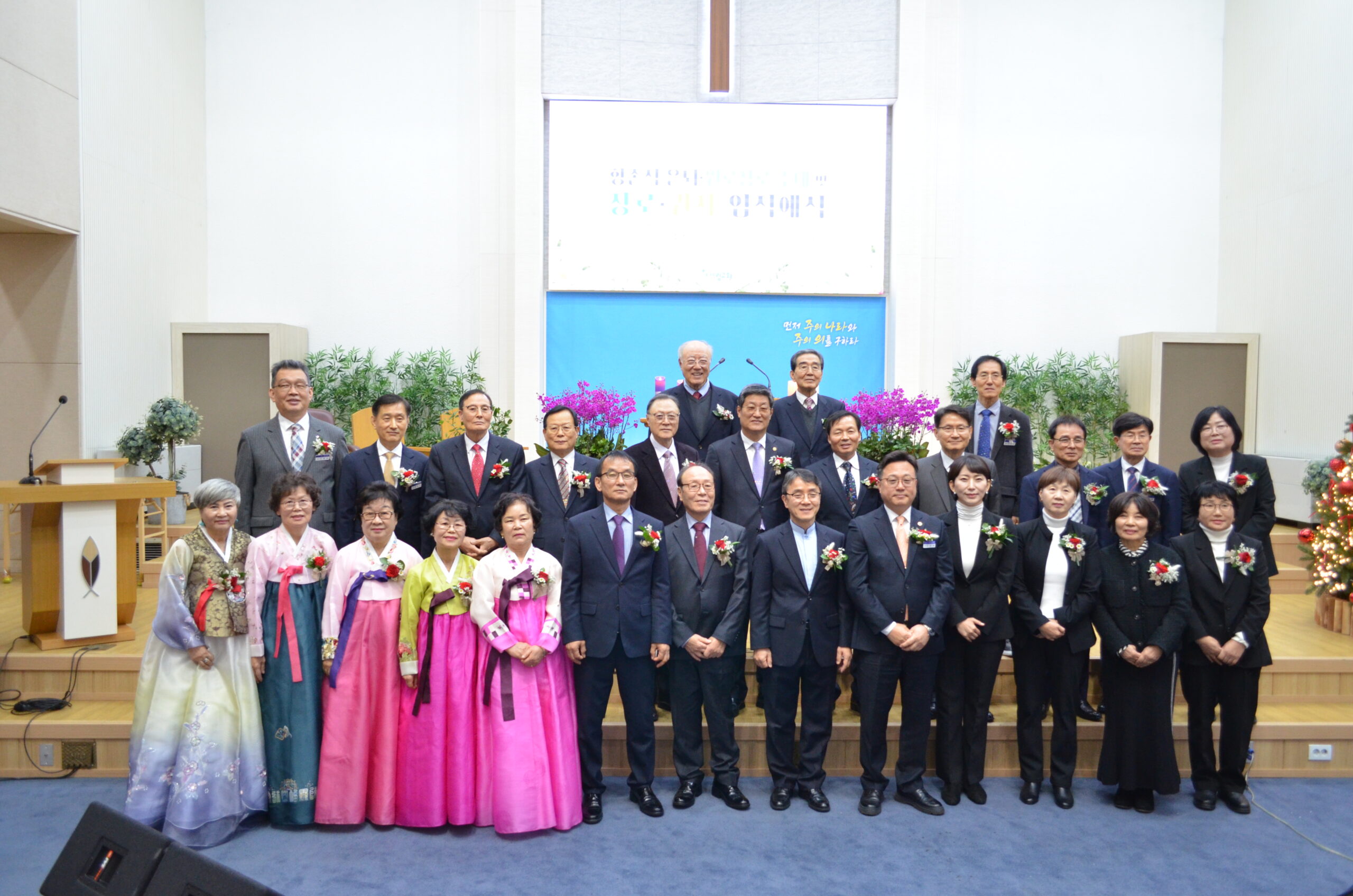 추대자는 △원로장로 장명구. 은퇴자는 △안 수집사 반화섭 △권사 손정신 외 4명. 임직자는 △장로 김세범 △권사 김수진 외 4명.