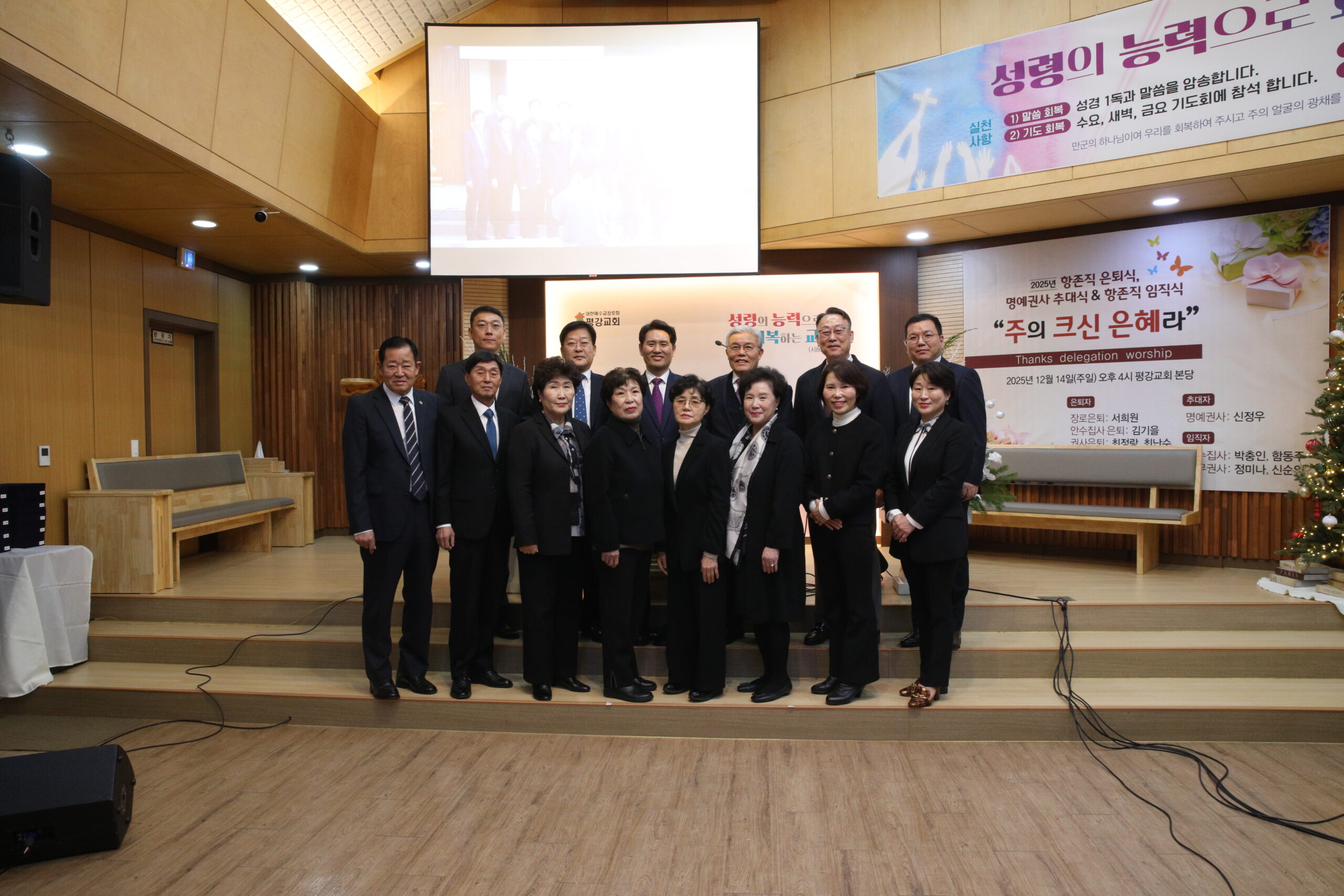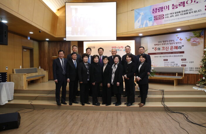 임직자는 △명예권사 추대 신정우 △안수집사 박충인 함동주 △권사 정미나 신순임.