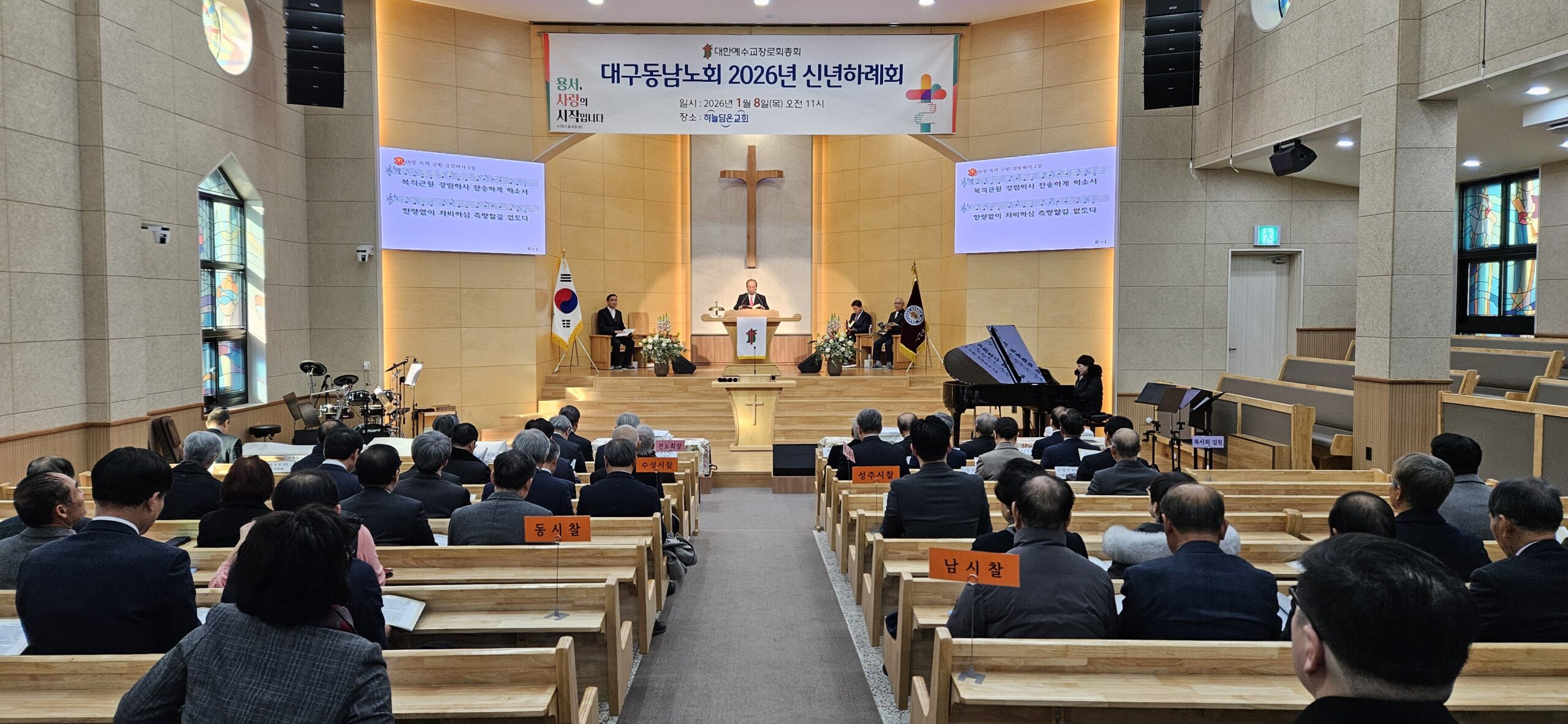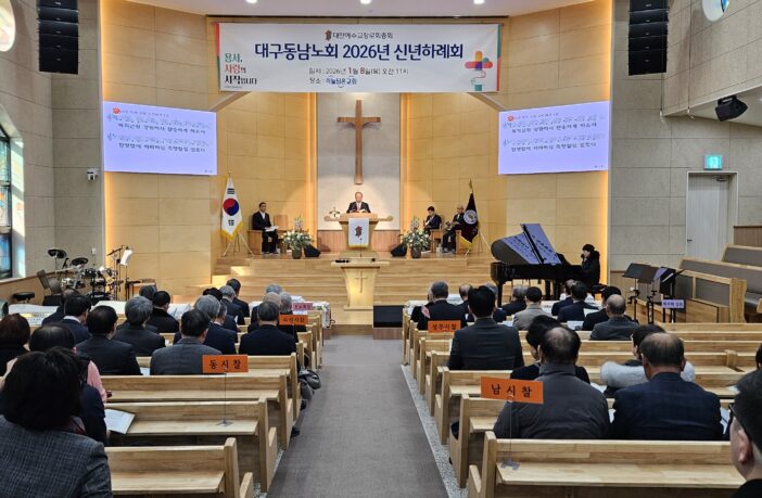 대구동남노회(노회장 김영봉 장로)는 지난 1월 8일 하늘담은교회(남정우 목사 시무)에서 목사·장로 등 230여 명이 참석한 가운데 신년하례회 및 예배를 드렸다.