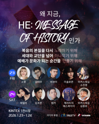 CTS기독교TV(회장 감경철 장로)는 1월 23일과 24일 양일간 일산 킨텍스 제1전시장에서 ㈜조이앤컴(대표 최현탁)과 함께 CCM콘서트 ‘Message of History : Heaven’s echo Seoul’를 개최했다. 이번 행사는 ‘빛으로 오신 예수 그리고 이제 우리가 그 빛이 된다’는 주제로 예수 그리스도의 탄생에서 부활까지 그 거대한 구원의 역사를 찬양으로 전하는 대형 CCM 콘서트로 기획됐다.