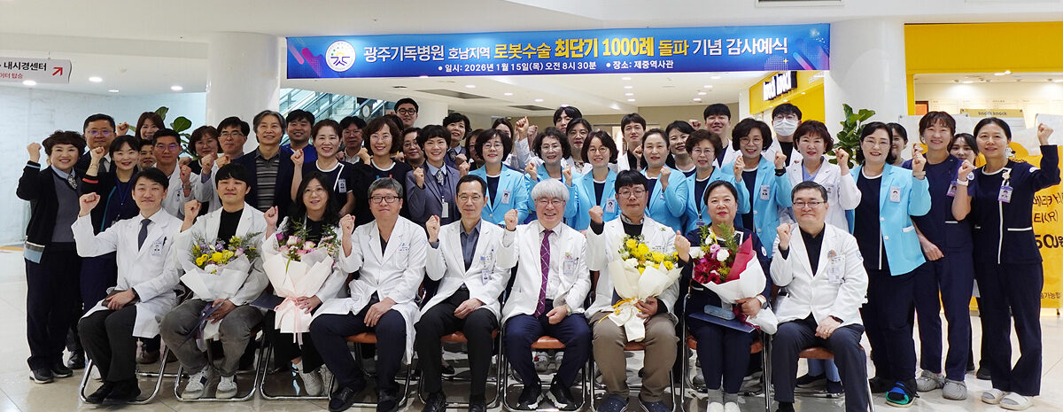 광주기독병원(병원장 이승욱)은 지난 1월 15일 제중역사관에서 호남지역 로봇수술 최단기 1천 례 돌파 기념 감사예배를 드렸다. 광주기독병원은 지난 2021년 2월 광주지역 최초로 최첨단 4세대 수술용 로봇 ‘다빈치 X’를 도입하며 로봇수술을 시작해 2025년 12월 로봇수술 건수 1천 례를 돌파한 바 있다.