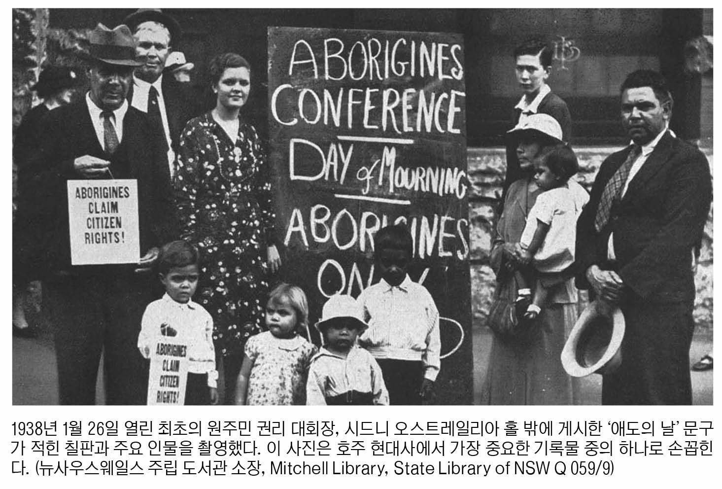 1938년에 아서 필립 선장의 도래 150주년을 맞아 원주민 지도자들은 이날을 ‘애도의 날(Day of Mourning)’로 선포했다. 당시 원주민은 시민권이 없었다. 거주와 이동, 결혼 등 모든 영역을 정부 원주민 보호국의 통제를 받았다. 원주민 아동을 강제로 가족과 격리 수용하는 ‘도둑맞은 세대(Stolen Generations)’ 정책도 활발하게 시행했다.