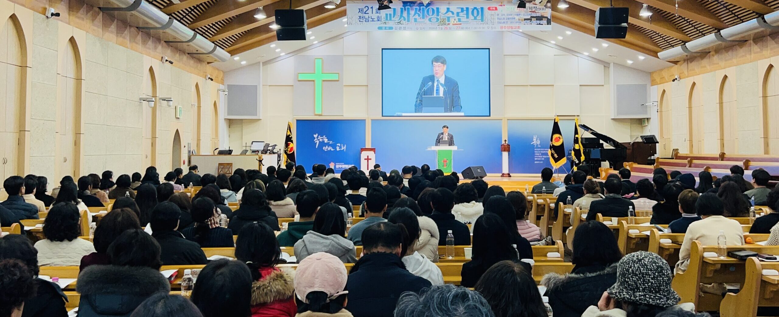 전남노회(노회장 주문창 목사)는 지난 1월 26일부터 27일까지 양일간 광주양림교회(김현준 목사 시무)에서 교육자원부(부장 강광호 목사) 주최로 제21회 교사신앙수련회를 개최했다. 양일간 영·유아, 유치부, 아동부, 중고등부 교사 등 누적 1천200여 명이 참석했다.