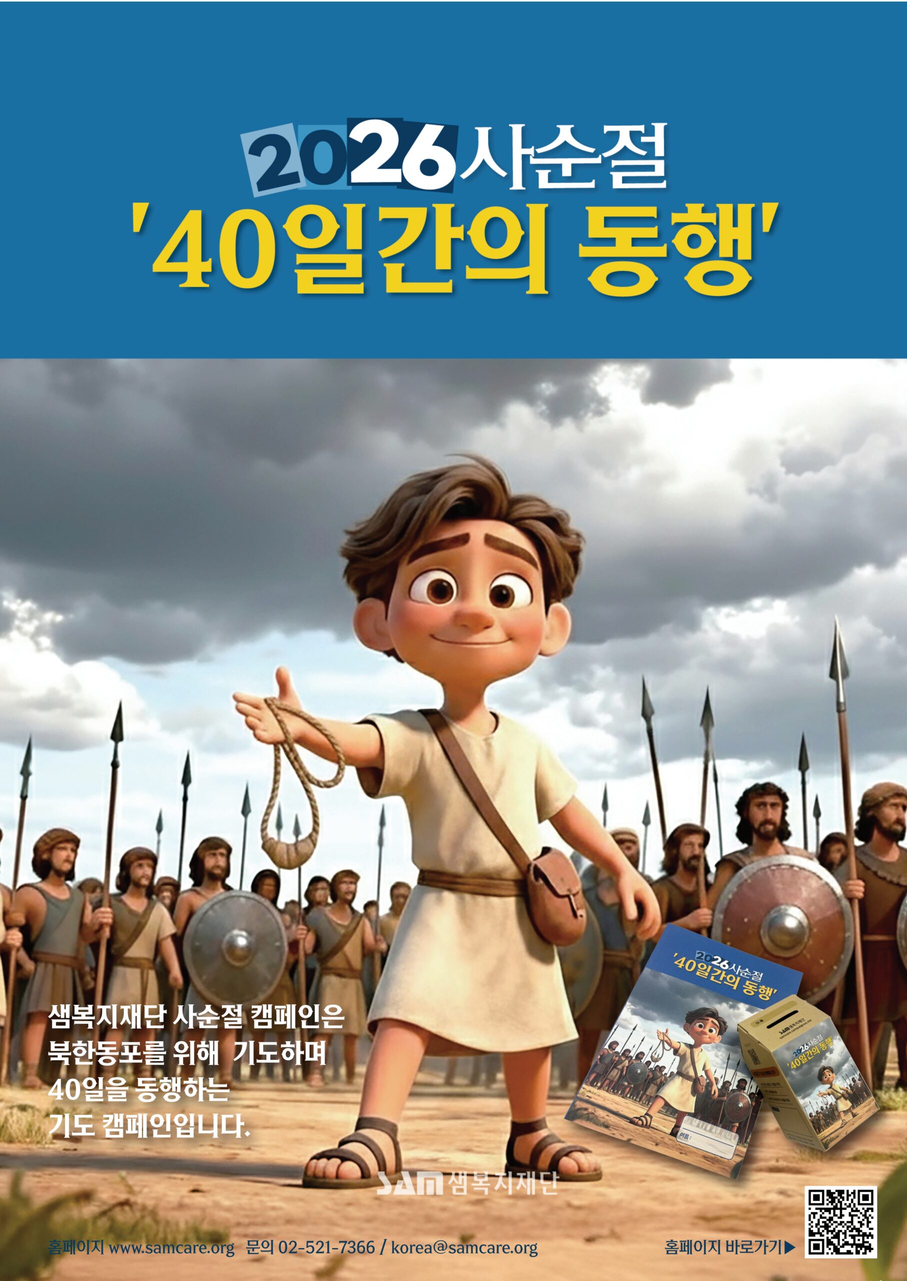 기독교 보건의료 NGO 샘복지재단(대표 박세록)은 오는 2월 18일 재의 수요일부터 4월 4일까지 사순절 기간 ‘40일간의 동행’ 기도 캠페인을 진행한다고 밝혔다.