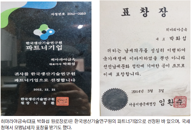 박 장로가 현재 영위하는 사업체 히마라야금속은 50년째 동일한 아이템으로 운영되고 있다. 그동안 많은 역경과 어려움이 있었지만, 하나님의 은혜로 한 우물을 판다는 일념으로 일해 왔다. 창업 때부터 함께한 직원도 있고, 수십 년 동안 동행한 자랑스러운 직원들도 있다.