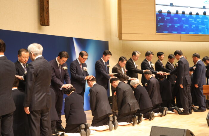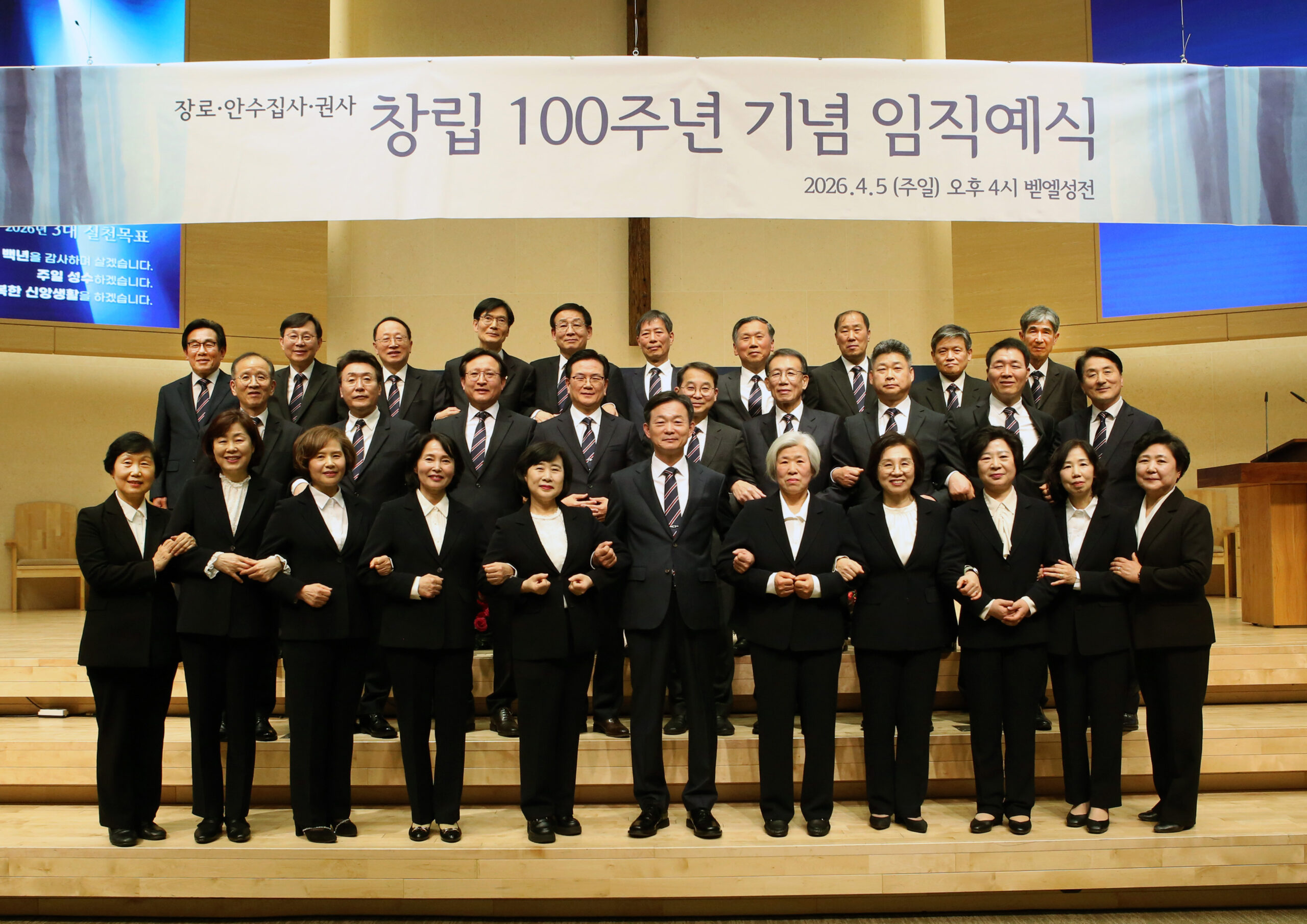 임직자는 △장로 안완곤 전은숙 박태순 이승하 황인준 조유진 조형호 진소영 박재완 배옥순 김종수 김선옥 조한면 고영주 김성구 김미경 △안수집사 강남구 외 81명 △권사 강경미 외 189명이다.