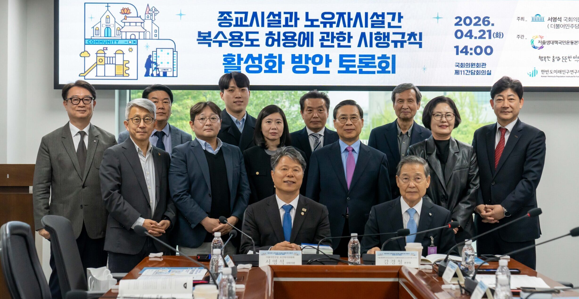 저출생대책국민운동본부·사단법인 행복한출생 든든한미래·한반도미래인구연구원은 지난 4월 21일 국회의원회관 제11간담회의실에서 더불어민주당 서영석 국회의원 주최로 종교시설과 노유자시설간 복수용도 허용에 관한 시행규칙 활성화 토론회를 개최했다. 이번 토론회는 2025년 1월 14일 시행된 건축법 시행규칙 제12조의 3(복수용도의 인정)에 따라 종교시설과 노유자시설(아동·노인복지시설 등) 간의 복수 용도 허용이 가능해진 시점에서 이를 실제 현장에 확산 적용시키기 위한 구체적인 활성화 방안을 모색하기 위해 마련됐다.