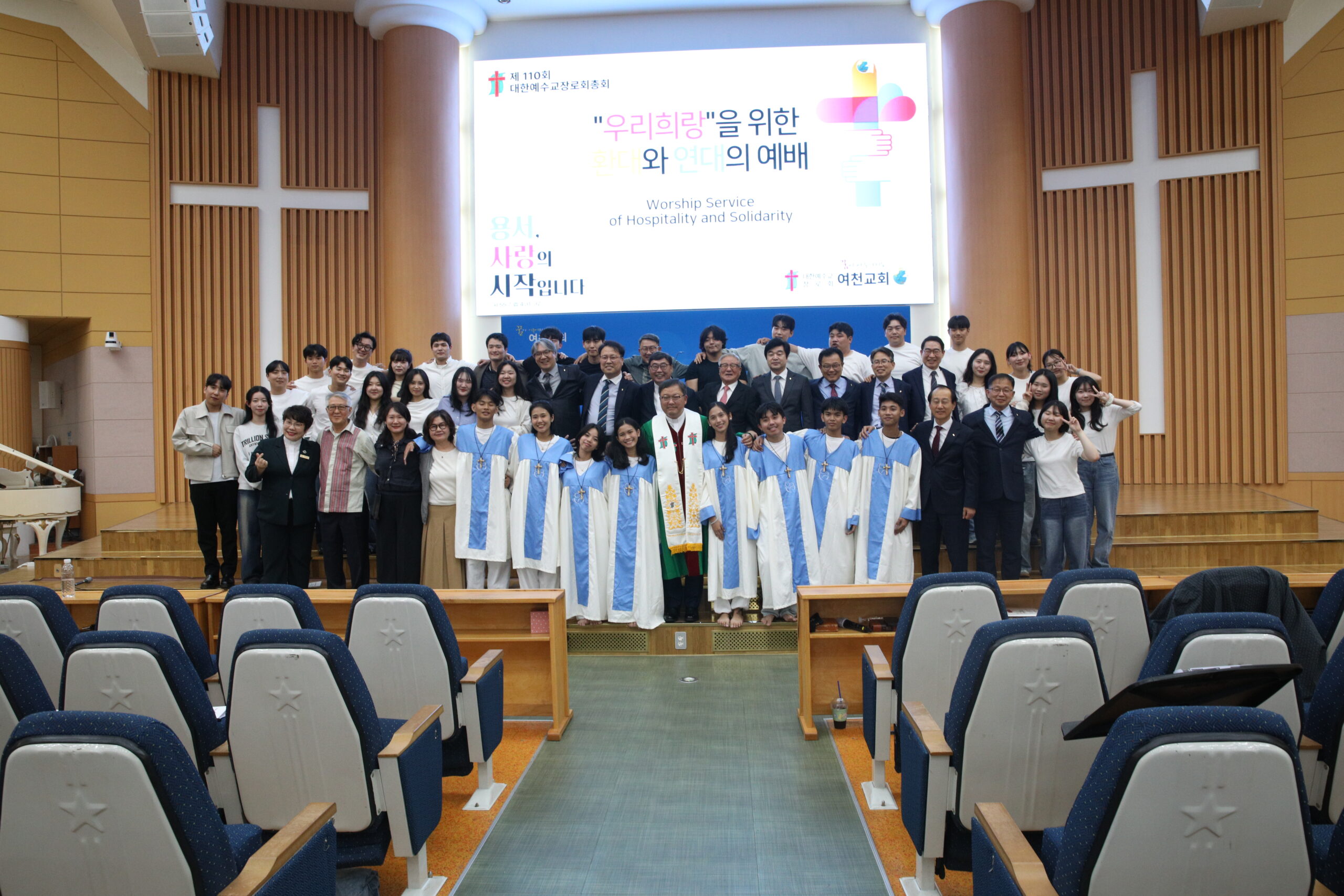 본 교단 총회(총회장 정훈 목사)는 지난 4월 26일 여천교회에서 ‘우리희랑’을 위한 환대와 연대의 예배를 드렸다. 이번 예배는 총회장 특별사업으로 진행된 ‘우리희랑 초청행사’의 중심 일정으로, 서울에서의 환영과 교제에 이어 여천교회에서 드려진 예배를 통해 환대와 연대의 의미를 신앙적 결단으로 연결하는 자리로 마련됐다.