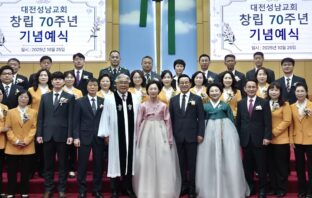 정민량 목사 원로목사 추대 등 대전노회 대전성남교회(정민량 목사 시무)는 지난 10월 25일 대전성남교회 예배당에서 교회창립 70주년 기념예식으로 감사예배·항존직 은퇴 및…