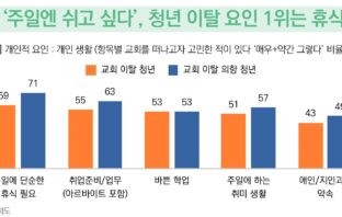 2030 청년, 교회 안에서 조용히 사라져 한국교회 2030 청년들이 조용히 교회를 떠나고 있는 것으로 나타났다. 목회데이터연구소와 예장합동 총회정책연구소가 공동으로 실시한…